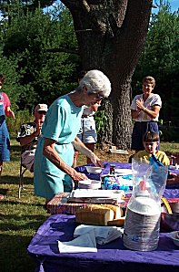 Ma dishing out desert. |