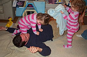 floor with both kids, practicing the dad thing. (ed- they're not pregnant yet, but that's the plan for after he gets his doctorate and enters the job market) |