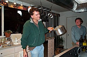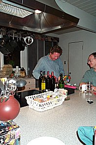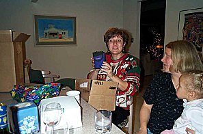 scalloped potatoes, etc... Here's Cynthia, Loretta, Miya and Marc anxiously watching as George butchers the ham. |