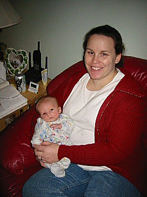 He's graduated to size 1 diapers now and is eating around 4 ounces every feeding. He often eats so fast with the new nipple that we have to slow him down so he won't snork everything he just drank back out his nose. |