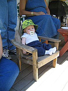 | In June, we got a real treat- Becky and Connor came to visit for the weekend! Here's Becky and Connor, age 4+ mos! |