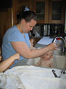 | Connor was the first baby that ever showered in our sink- whoo-whoo! |