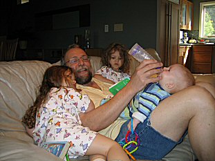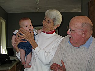 | George's family came up one day- here's grammie and poppa with their first great-grandchild. |