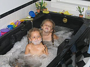 Of course, the girls didn't spend all their time at camp. Here they are, lounging in the whirlpool tub... |