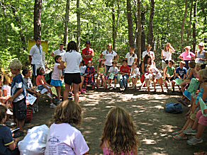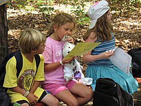 | And they learn all kinds of camp songs every week and they're encouraged to sing LOUDLY, as Jordan and Taylor are demonstrating here. |