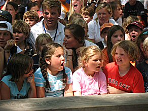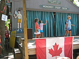 There's a zillion things to do at camp. Everyday they go practice swimming at Long Pond. Then they get to choose a weekly occupation and a daily elective. They both chose Dance as their occupation, so HERE's Jordan on the stage. |