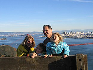 | Then, just before Christmas day, Caky and Joepa came to town a long visit. One day we went up the San Francisco and went over to the Marin highlands. What a Day! We could see all the way down the bay to San Jose..! Anyhow, here's Caky, Taylor, Joepa and Jordan w/the Gate and SF in the background! |