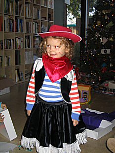 | This year's theme was "dress up" stuff- here's Taylor being a cowgirl. |