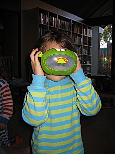 | Cynthia, Jeff and Georgia came over for dinner. Here's Cynthia modeling the Lizzy McGuire glasses. |