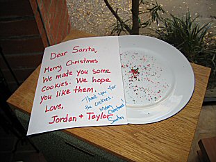 | We left cookies and a note for Santa; He answered the note and ate the cookies...! |