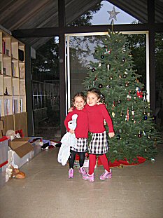 | The tree gets erected- the girls doing the Christmas dance in one of their dressup outfits. |