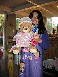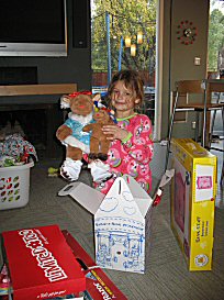 By 7, I had the cinnabons and coffe built; and the girls ran around and woke everyone up. HERE's Jordan with a new build-a-bear... |