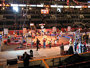 | And then we went inside- they opened the doors 1 hour early and everyone was invited to go down on the show floor and watch the performers warm up- so we went down and sat on one of the rings... |