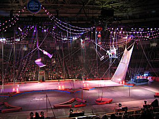 | They had performers on the trapeze. |