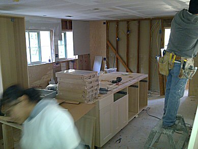 cabinets everywhere, walls open... making progress. [this on 6-jan, 15 days after taking possession...!] |