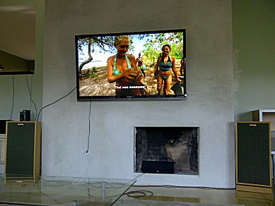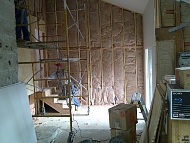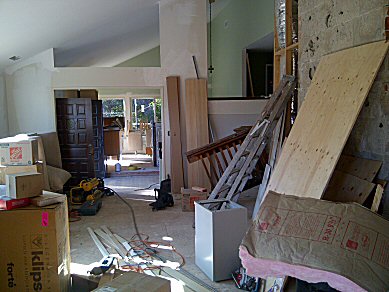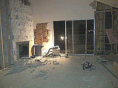 | the fireplace; wider than it uses to be; covered with cement, looking good! | |