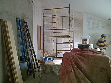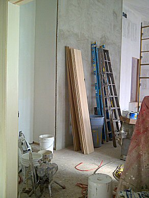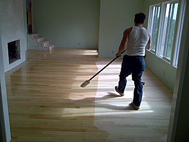 my man Tony- finishing the maple floors. we did 5 coats of poly... should last a bit! |