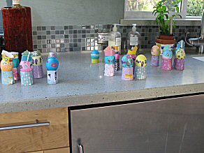| Later on the girls (tastefully...) dyed and decorated a couple of dozen eggs. |