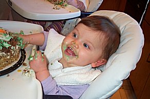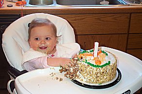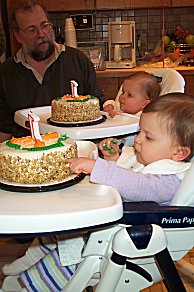 | Here's when the fun really began. The girls had their first taste of cake (carrot none the less). | ![]() |
