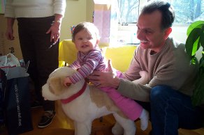 | Jordan checks out her new Dog rocker from BB with Joepa - very fun! | ![]() |