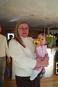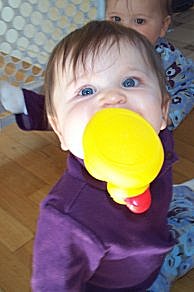 Taylor taste tests the Rubber Duckie with Aunt Jane. |