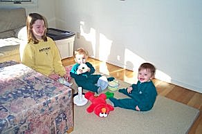 | Caky came over and brought some presents of course the girls were more interested in the wrapping paper. | ![]() |