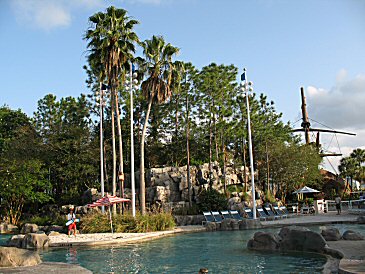| This is the pool at our hotel. Buried in this hill is a cool waterslide that Jordan (and George) loved and went down many times. |