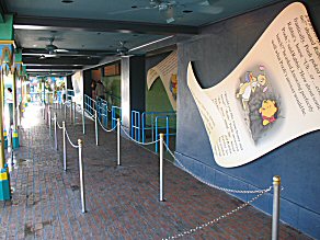 Because the girls have very different interests at this point, we had to split up. Jordan went with George, and Caky paired up with Taylor. The first ride Jordan and I went on was Winnie-the-Pooh. HERE's an unusual sight- an empty line at Pooh, the busiest ride in the park! |