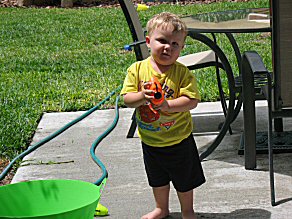 ...after Brian loaded up the squirt guns. HERE's Brady practicing his aim. |
