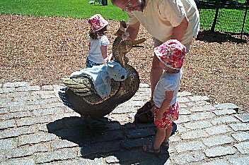 | We went thru the Boston Commons and stopped at the "Make Way For Ducklings" statutes. The girls didn't quite get it... | ![]() |