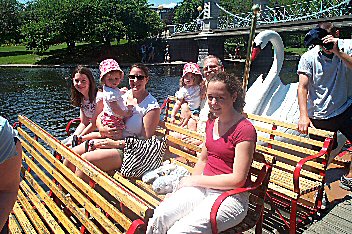 | Since george was a swan boat virgin, we had to stop there next. Here's MJ and Jaimee getting ready to depart. |