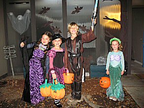 That night, Gavin and Claire came by and MJ took them all out. This year, they went all the way around the circle in our neighborhood (maybe 80 houses..?) They're definitely getting bigger... |