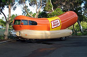 Did you ever wonder what happened to the Oscar Meyer Weiner-mobile? Well, we found it on the Big Island in Hawaii- happily retired, hanging out in the Waikoloa Hilton parking lot. |