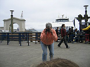 you never know what kind of weather you're getting. HERE's Sharon being the class photographer before we board the ferry. |