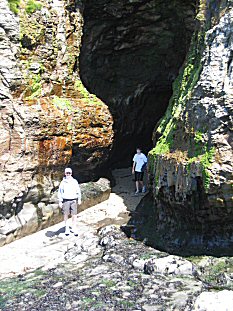 | HERE's Donald and Brendan, Sharon's husband and son, checking out some of the caves in the rocks. |