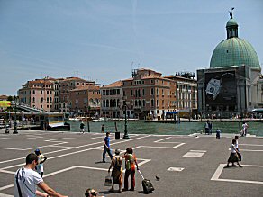 After 35 minutes on the train, we finally arrived in Venice. What you see walking out from the train station (above). HERE's a view from the bridge, looking back toward the train station (upper right). |