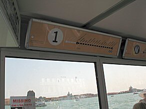 Then we hopped on the water taxi to cruise down the Grand Canal back to the train station. HERE we see all stops listed (just like a bus!) |