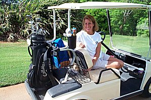 Even though it was really warm, Carol seemed to be enjoying herself and stuck it out for 18 holes... |