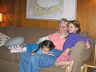 The girls also received a box from Caky- here they are opening it.. Margaret left the next day to return home to Bangor, Maine. We all had a good time, and will see her again this summer! |