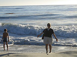 | Then the kids went home w/Caky and Joepa; and MJ and George hung out in Monterey for the evening. Here's MJ on the beach in Carmel. |