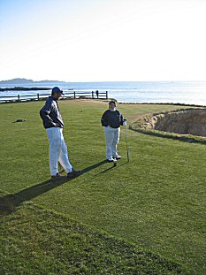 MJ had to attend a conference at Pebble. Of course, this required playing Pebble Beach. Two days before the conference, a tee time opened up so George got to go, too! WooHoo! |
