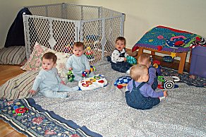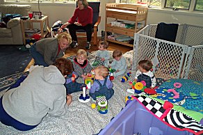 Playgroups are organized largely by age. The location rotates thru all the moms in the groups. Here's the kidlets at our house. |