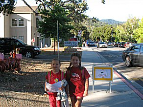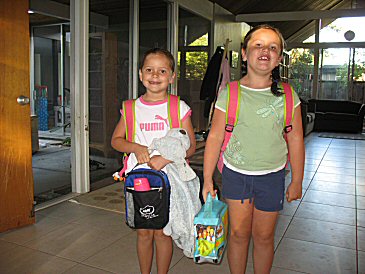 ON 23-aug-07, Jordan and Taylor went to their first day of first grade at Saratoga Elementary! Last year we tried to get into Saratoga Elementary, but their Kindergarten was full so we wound up at Foothill Elementary instead. This year some slots opened up and we jumped at the opportunity, so the girls will be attending Saratoga Elementary for the next 5 years. |