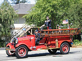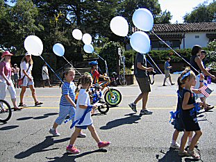 This year, Saratoga, California celebrated their 50th year as a city, and we were there. The girls elementary school marched in the parade- HERE's Jordan and Taylor and MJ and Scooby getting their game faces on. |