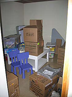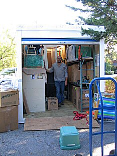 | Here's an all too familiar sight- George loading a POD. We're using this one to move from the rental house to the new house. |