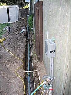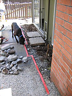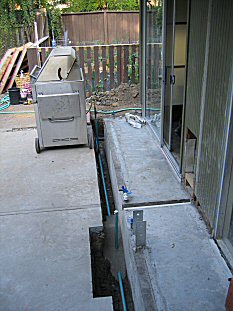 | Next step- dig a 20" deep trench running the length of the house so we can get new gas service back to the grill and cooktop. |
