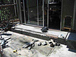 | Another view- this time adjusting the pour to accomdate the door sill. |