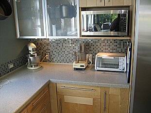 | The backsplash is complete- we went with the same Walker-Zanger tile we had in Carlisle... | |