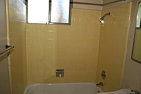 HERE's what we started with. The floor was vinyl-asbestos tile, the tub was rusting and the faucet barely worked... pretty suboptimal. |