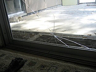 She shoots- AND SCORES! One day while George was out, the girls and ashley were played a little hockey. Apparently Jordan loaded up a terrific shot and cracked the front window...! I let Ashley know that if she couldn't keep out shots from a 5 year old, she was off the team. We agreed not to play hockey indoors any more... |